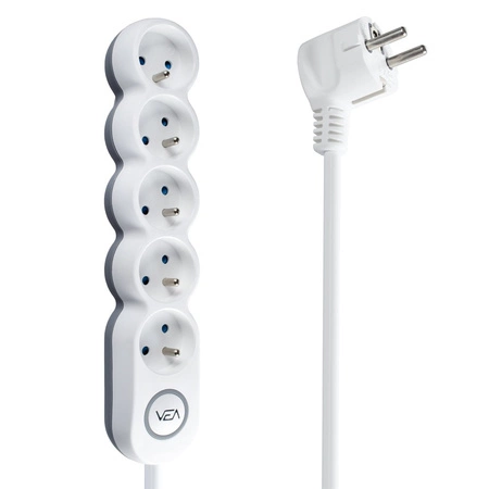 Prodlužovací kabel s pěti zásuvkami a 3m kabelem je nepostradatelným pomocníkem v každé domácnosti, kanceláři, škole atd.