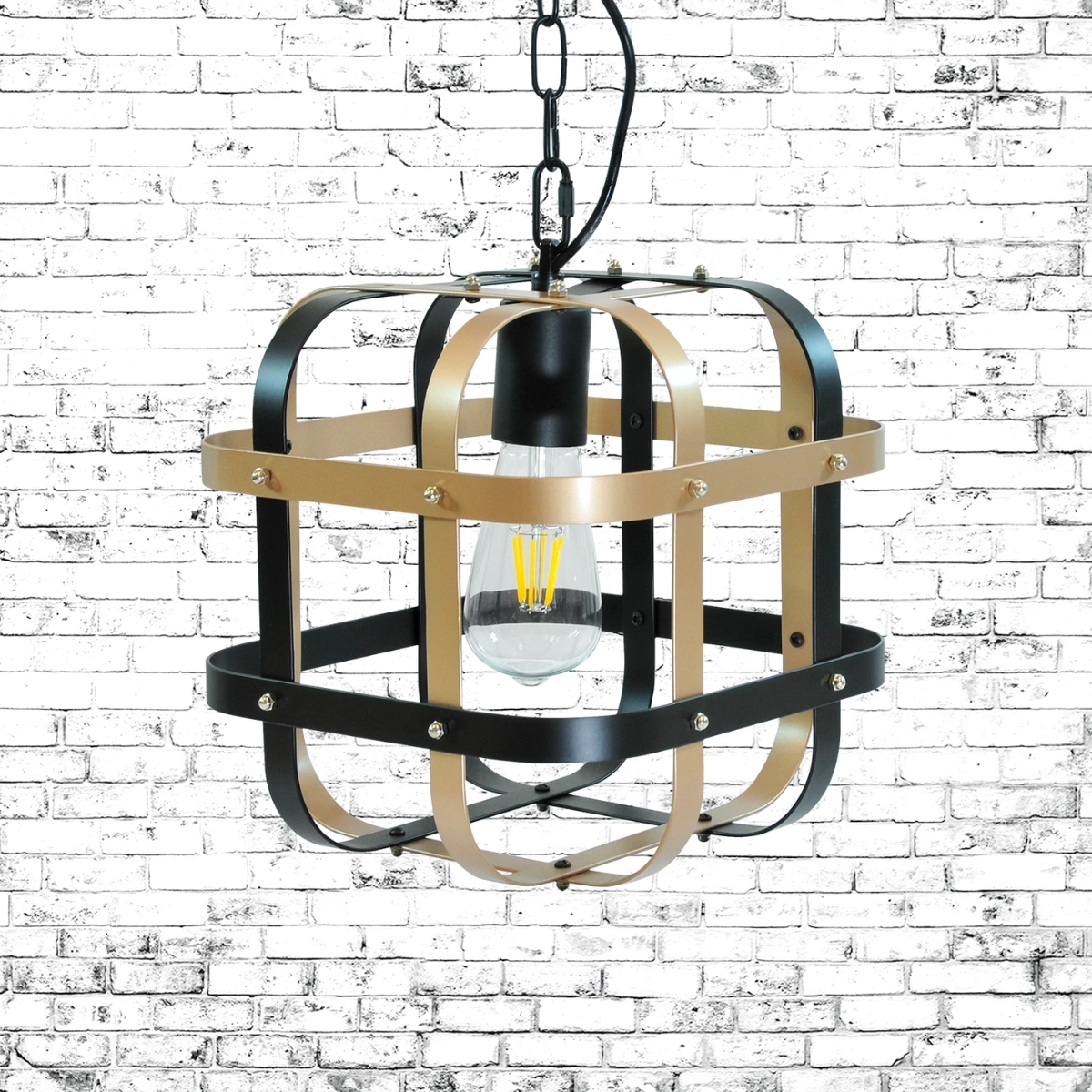 Závěsná hliněná lampa E27 černá a zlatá GOLDLUX (Polux)
