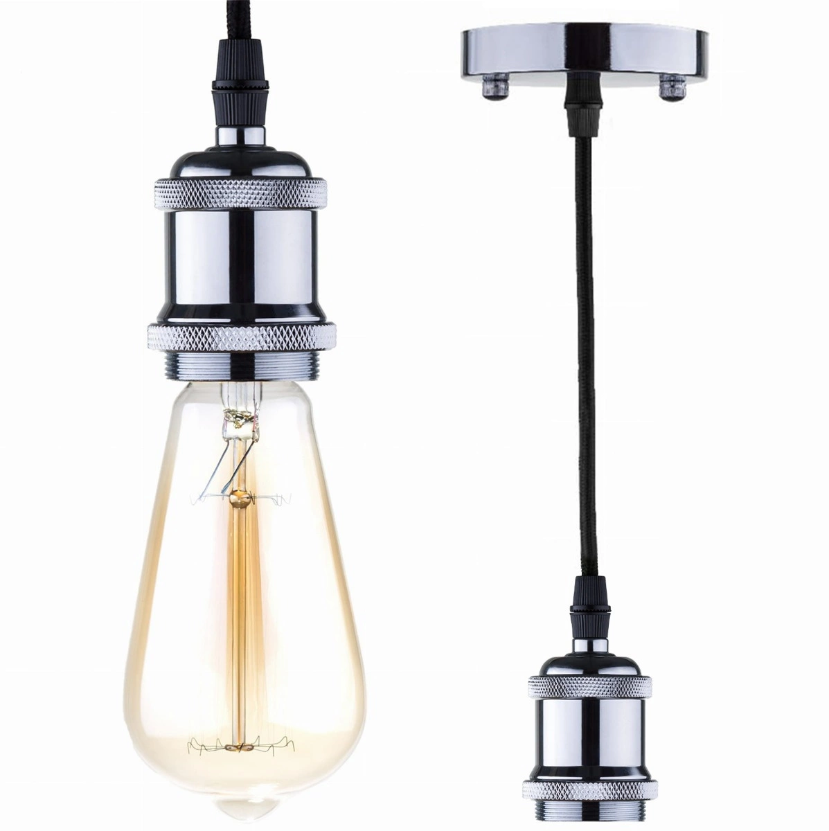 Závěsná lampa s držákem E27 nikl 100 cm černý kabel