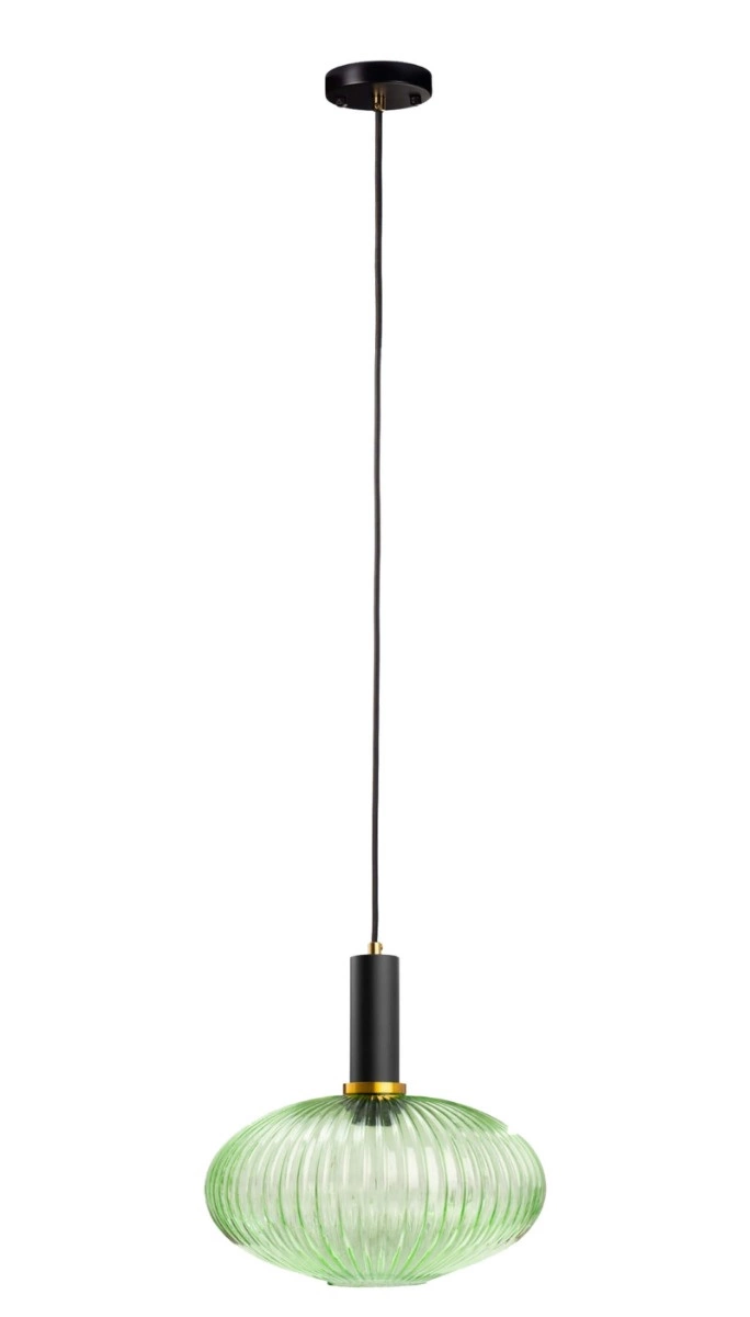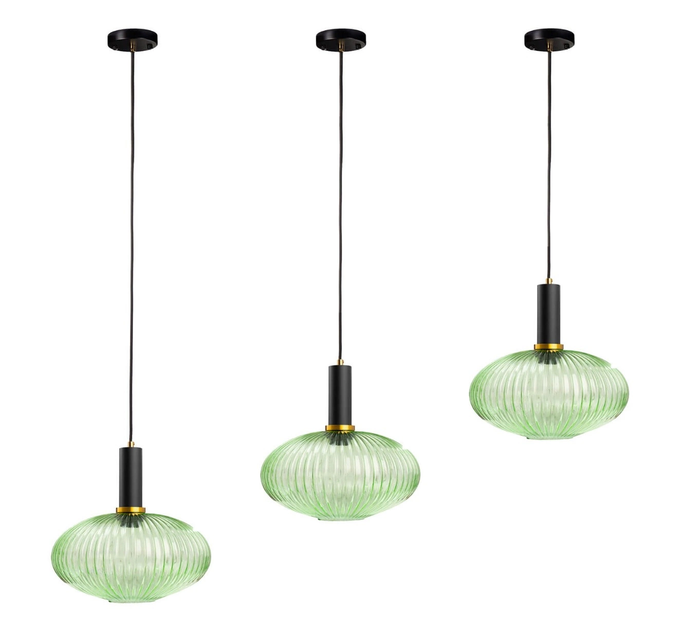 Prezentované závěsné svítidlo je zajímavou nabídkou do elegantních interiérů v moderním i klasickém designu. Lampa se vyznačuje krásným rýhovaným stínidlem ze zeleného skla s černým rámem se zlatým nádechem. Několik svítidel tohoto modelu zavěšených vedle sebe vytvoří jedinečné uspořádání například nad jídelním stolem nebo nad kuchyňským ostrůvkem. Nespornou výhodou lampy je možnost nastavení výšky zavěšení . Při instalaci si zákazník určí délku kabelu, na který bude viset - maximální délka svítidla je až 117cm.