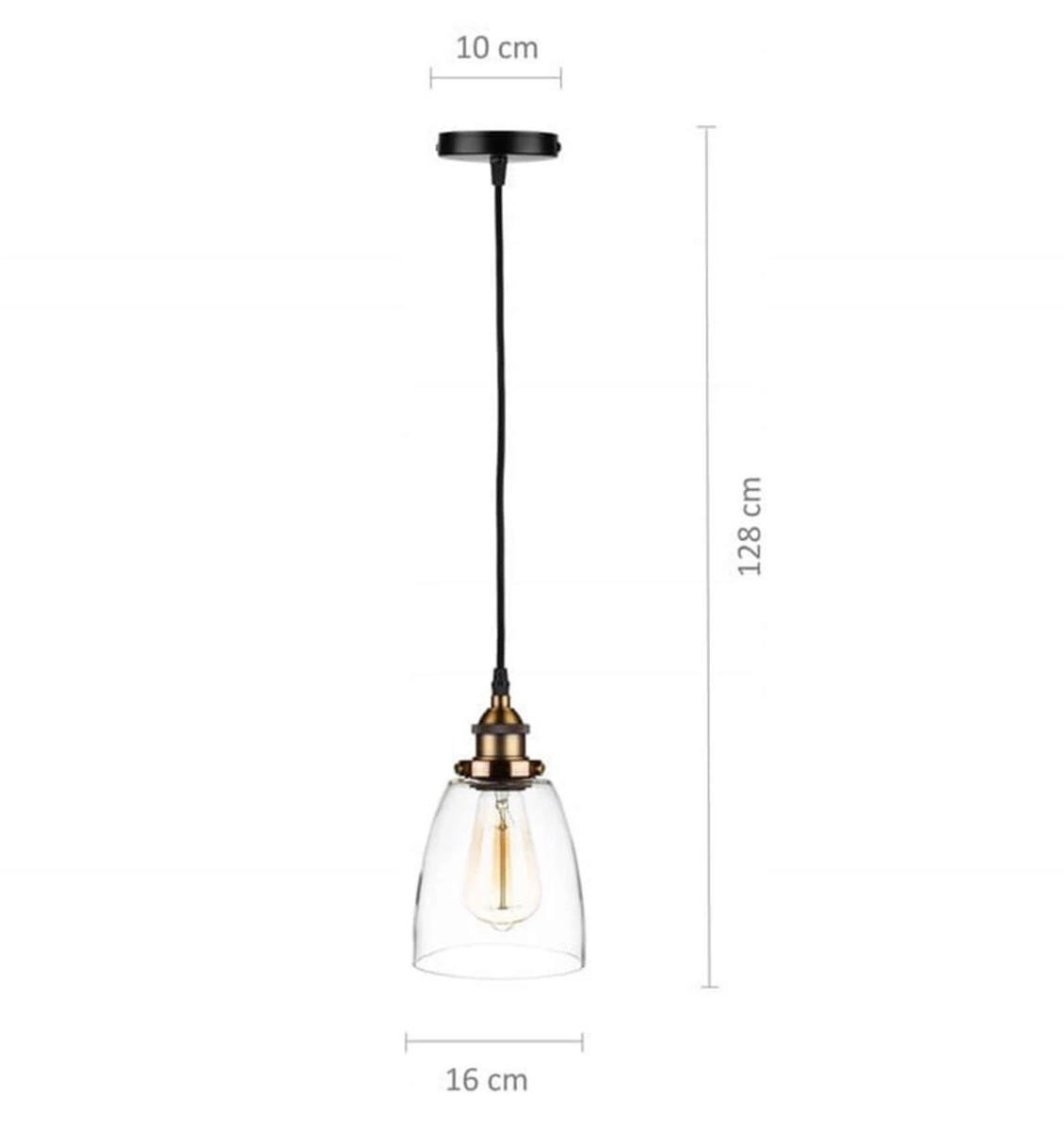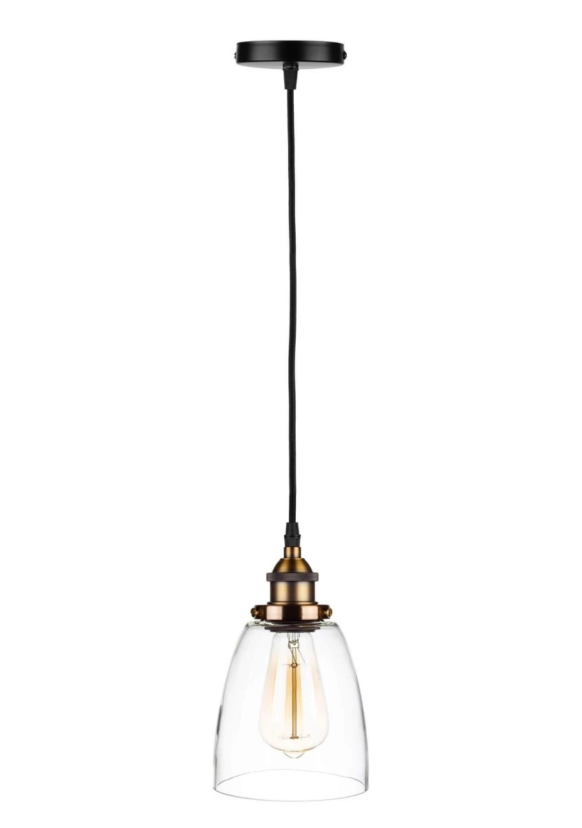 Prezentovaná závěsná lampa je zajímavou nabídkou, která se vyznačuje průhledným skleněným stínidlem s jednoduchým tvarem kbelíku. Barva rámu je sladěna se stínidlem a je v barvě starého zlata. Kovové obložení stropu dokonale ukryje montážní prvky a samotný kabel je omotán estetickým opletem - délku kabelu lze upravit podle vlastních preferencí. Skleněná lampa s elegantním rámem se skvěle hodí do kuchyně jako hlavní osvětlení interiéru. Díky své univerzální povaze se tato lampa hodí do každého interiéru, moderního i loftového. Bude fungovat se žárovkami s paticí E27 (světelný zdroj není součástí dodávky).