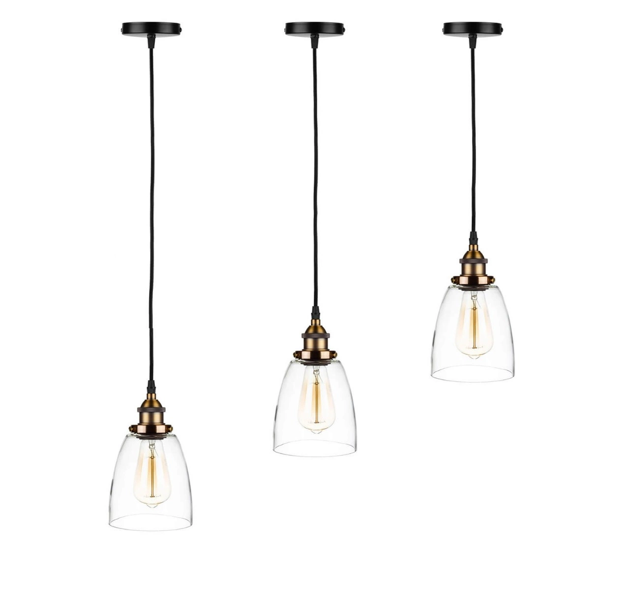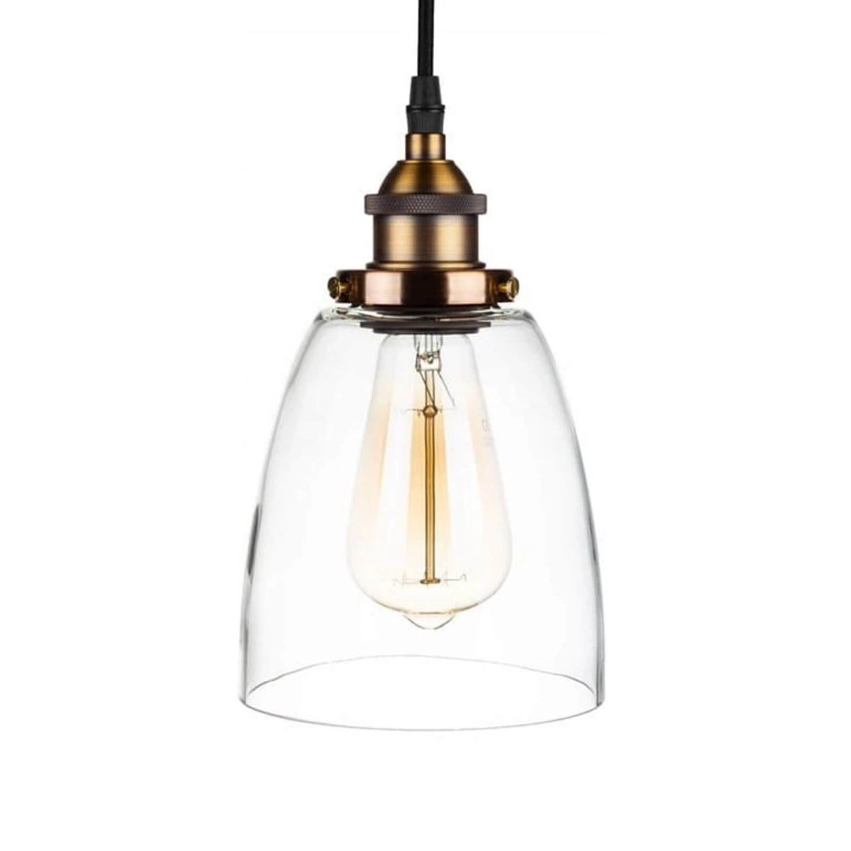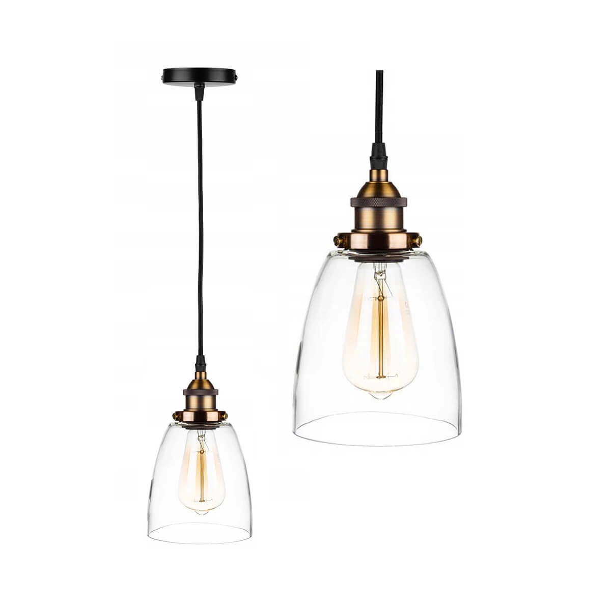 Zlatá transparentní závěsná lampa E27, stropní přesah, skleněné stínidlo, podkrovní lampa