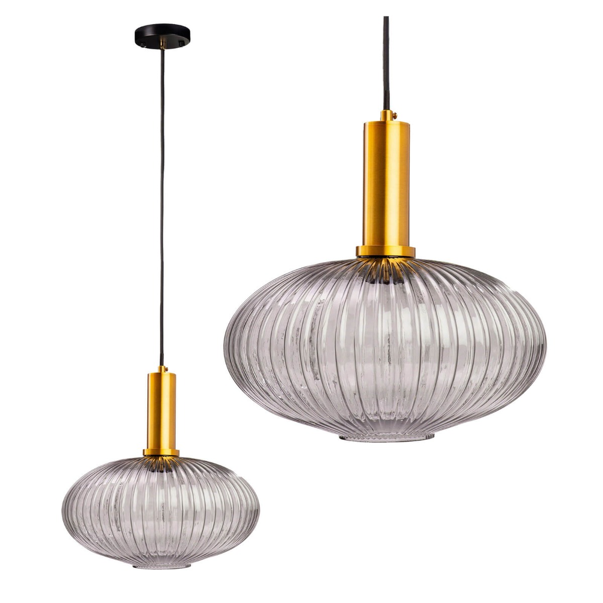 Zlato-grafitová závěsná lampa E27, stropní přesah, skleněné stínidlo, moderní