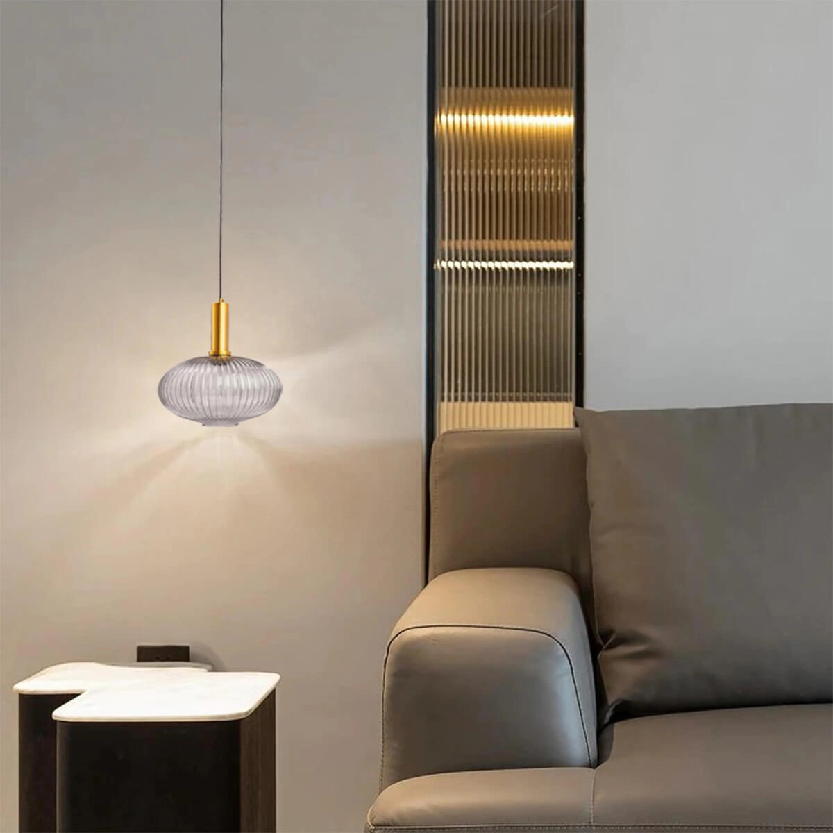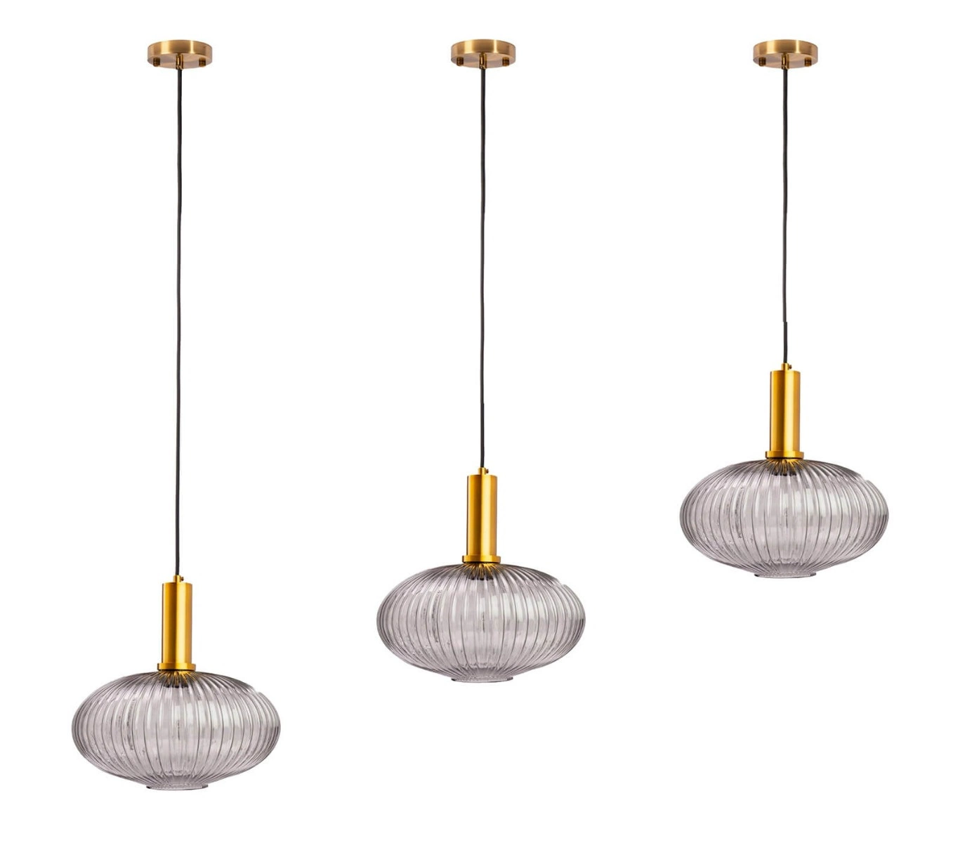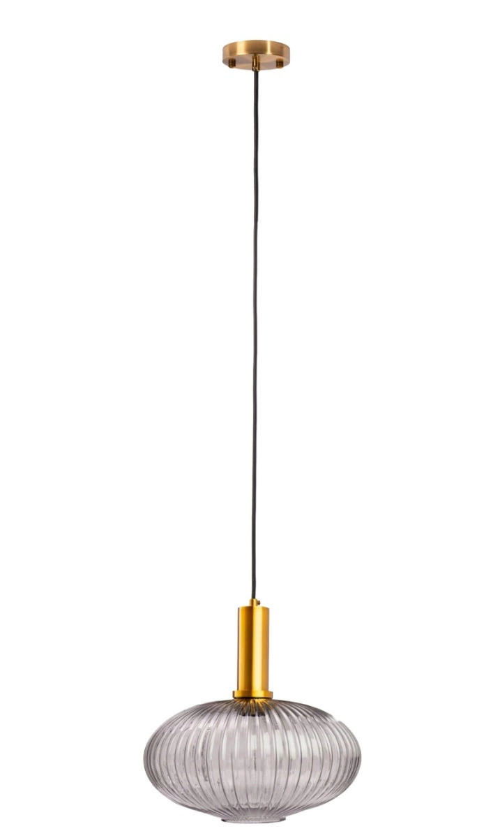 Prezentované závěsné svítidlo je zajímavou nabídkou do elegantních interiérů v moderním i klasickém designu. Lampa se vyznačuje krásným vlnitým stínidlem ze skla grafitové barvy se zlatým rámem a černým opleteným kabelem, které dokazuje kvalitu výrobku. Několik svítidel tohoto modelu zavěšených vedle sebe vytvoří jedinečné uspořádání například nad jídelním stolem nebo nad kuchyňským ostrůvkem. Nespornou výhodou lampy je možnost nastavení výšky zavěšení . Při instalaci si zákazník určí délku kabelu, na který bude viset - maximální délka svítidla je až 117cm.
